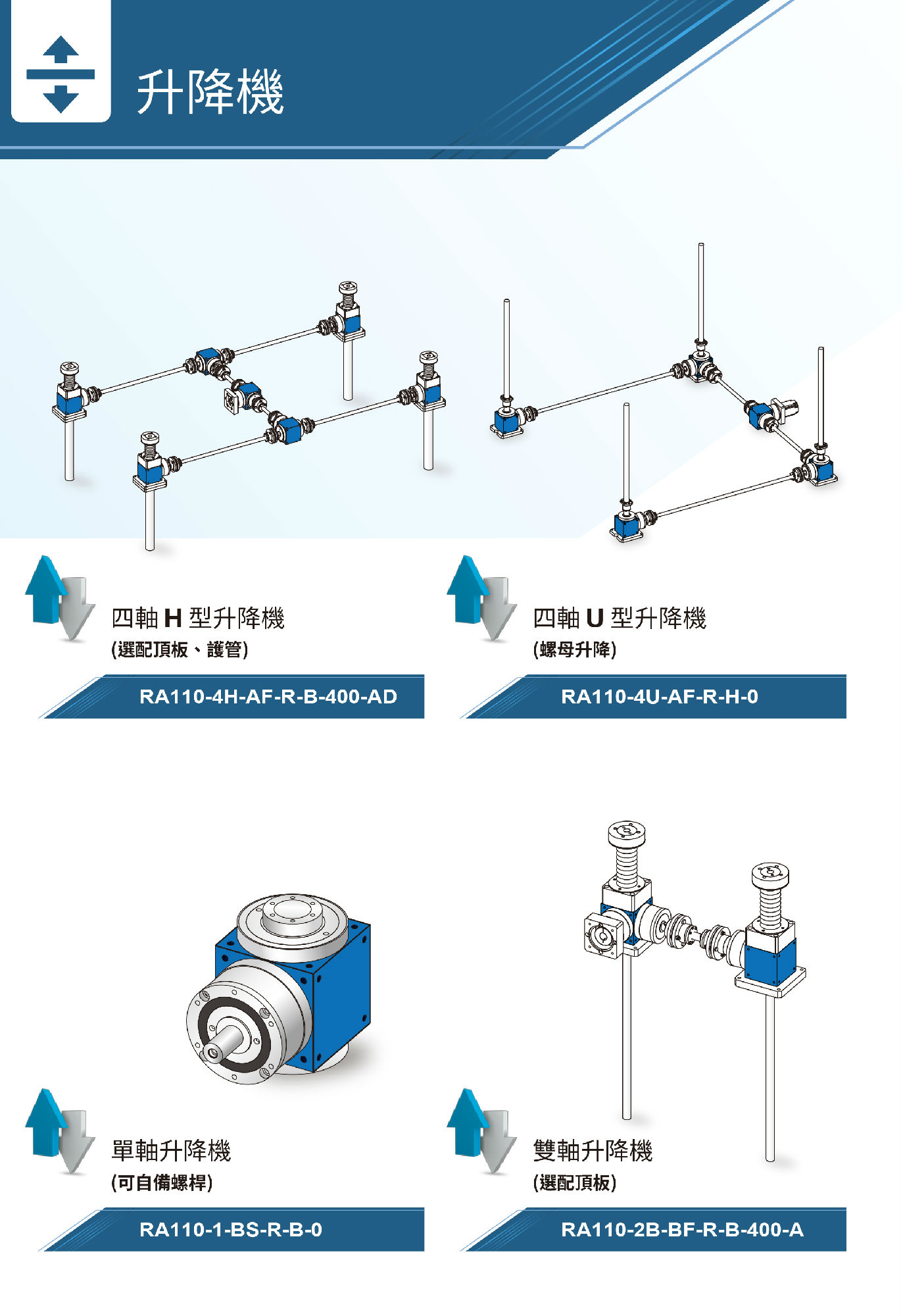 AF系列四軸升降機是U型結(jié)構(gòu),采用螺母升降。適用于晶片、面板、倉儲、回流線等有垂直升降需求的產(chǎn)業(yè),可替換傳統(tǒng)的氣壓罐與蝸桿設備,同時達到多段與精準控制。