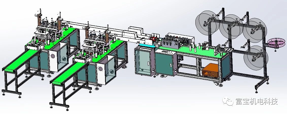 口罩機是將多層無紡布通過熱壓、折疊成型,超聲波焊接,廢料切除,耳帶鼻梁條焊接等工序制造出具有一定過濾性能的各種口罩,口罩設備不是單臺的機器,它需要多臺機器的配合完成各種不同的工序。面對這么多的工序,口罩機能做到每0.5秒一個一次性口罩!