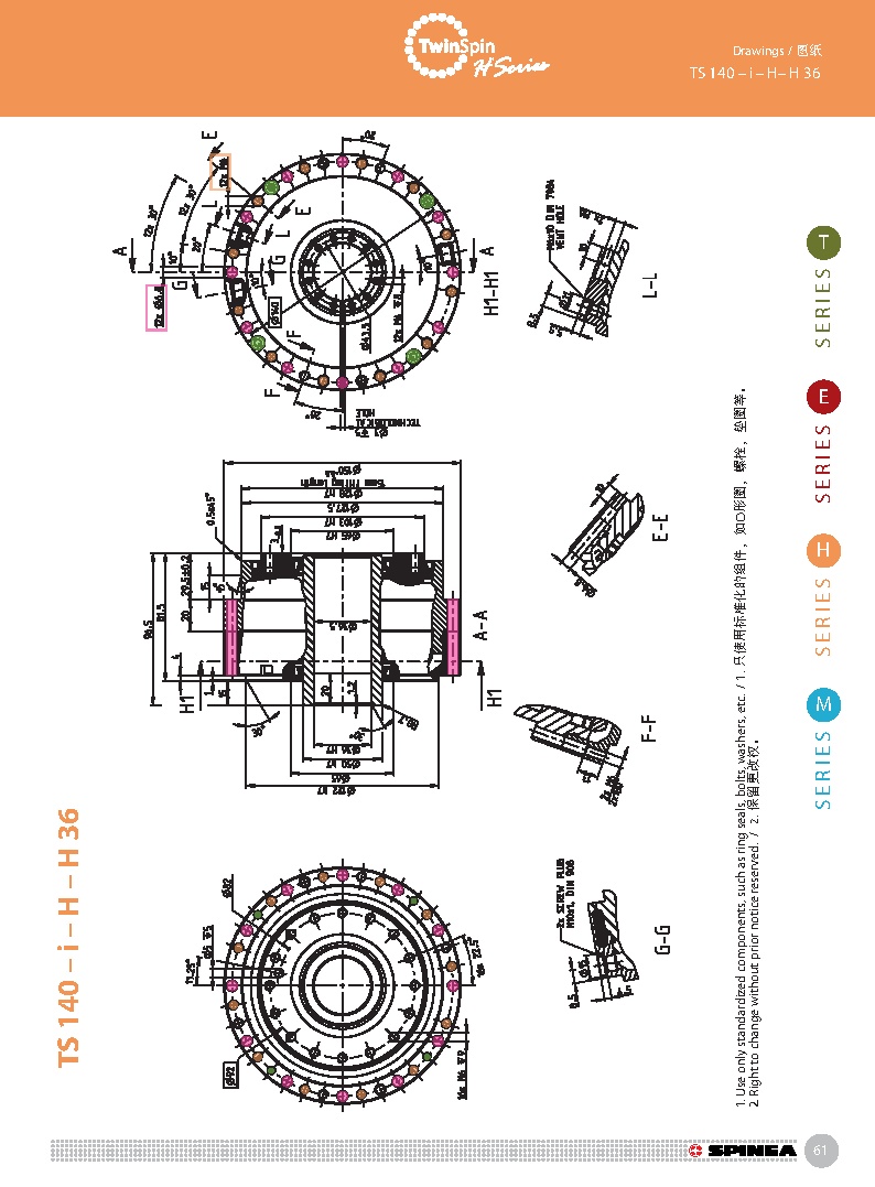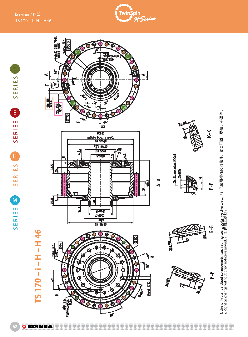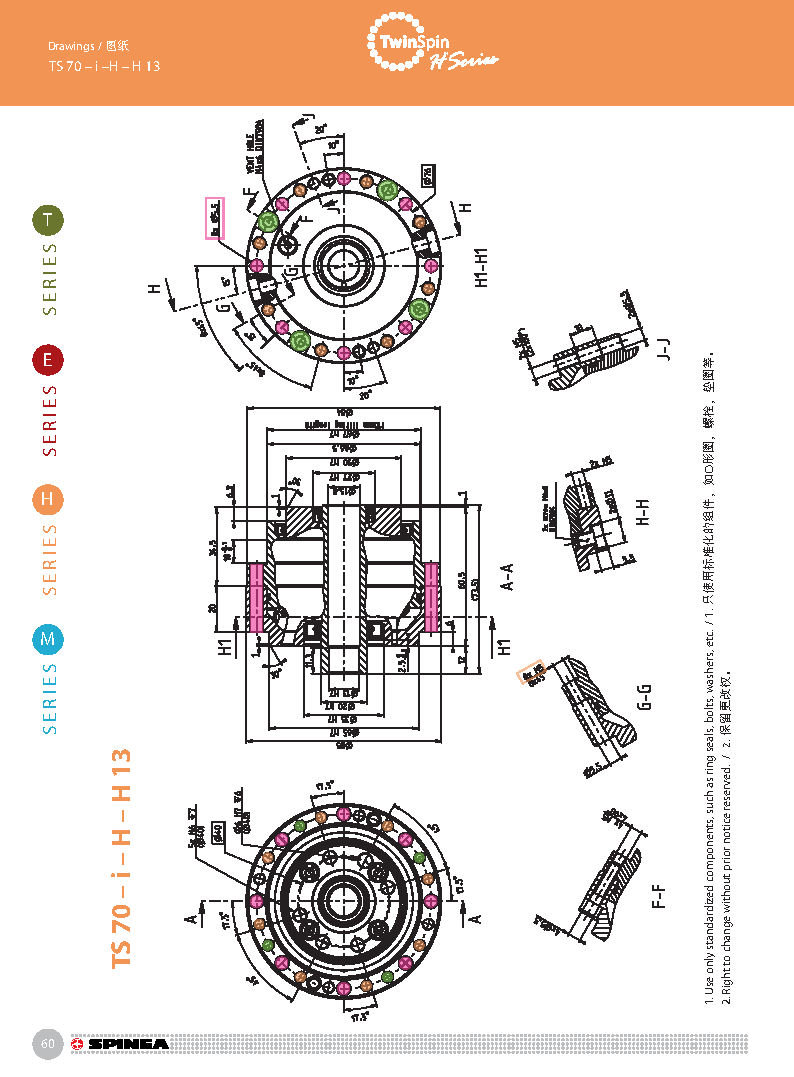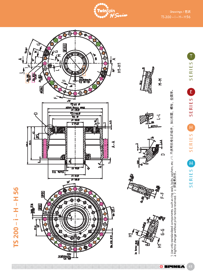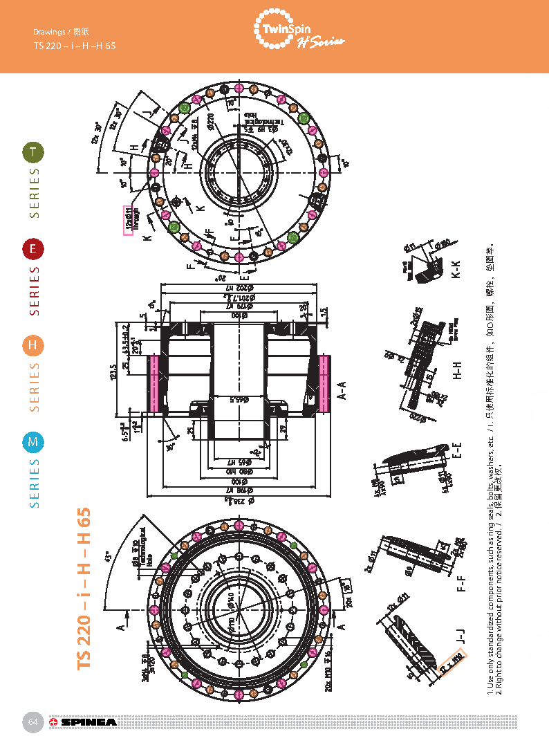 H 系列是帶有中空孔的Twinspin高精度減速機(jī)。電線,壓縮空氣管道,驅(qū)動(dòng)軸可從減速機(jī)中間穿過(guò)。 該系列為完全密封,內(nèi)部注有終生免維護(hù)油脂。 減速機(jī)包含精密減速機(jī)構(gòu)和高強(qiáng)度交叉滾子軸承,故又名“軸承式減速機(jī)”。這種設(shè)計(jì)可以把負(fù)載直接安裝在減速機(jī)輸出法蘭上,省去輸出端的額外軸承。